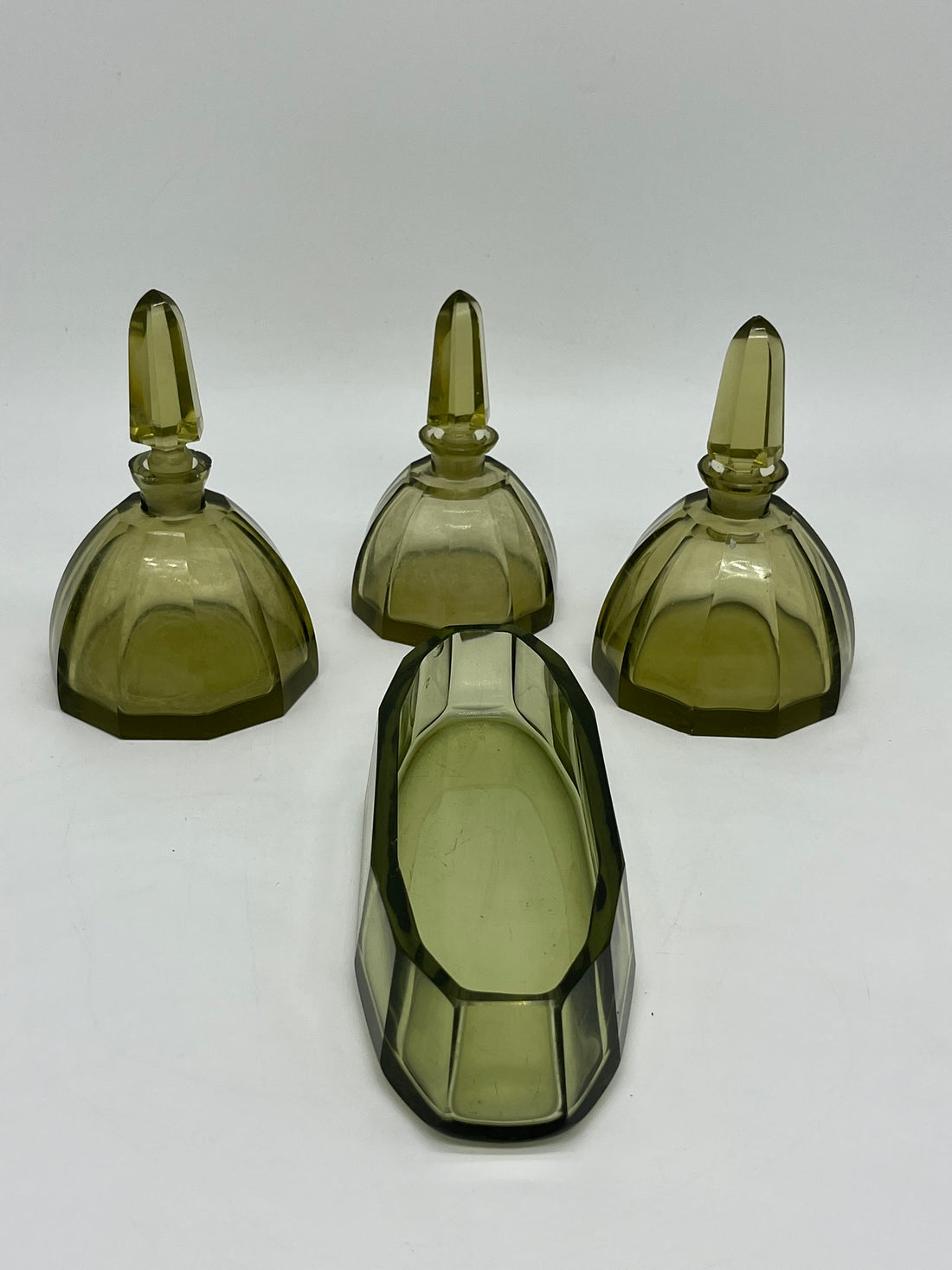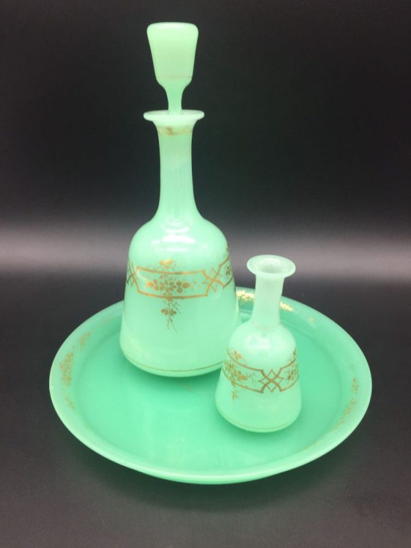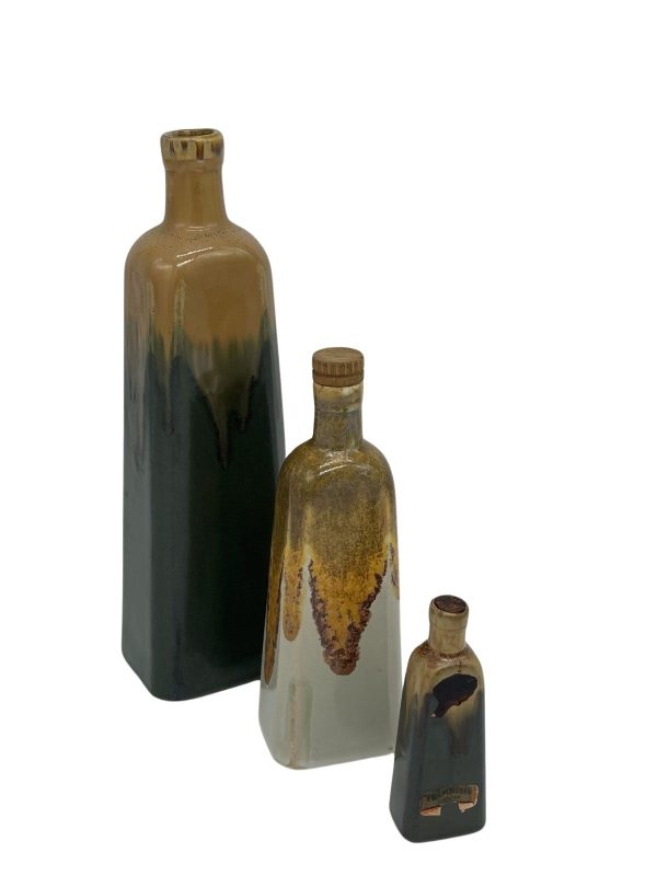 set of three enameled stoneware bottles, marked under the base “Jabert”