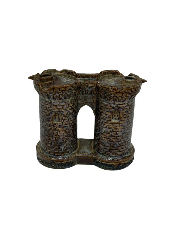 Very rare troubadour liqueur bottle in enamelled and gilded stoneware