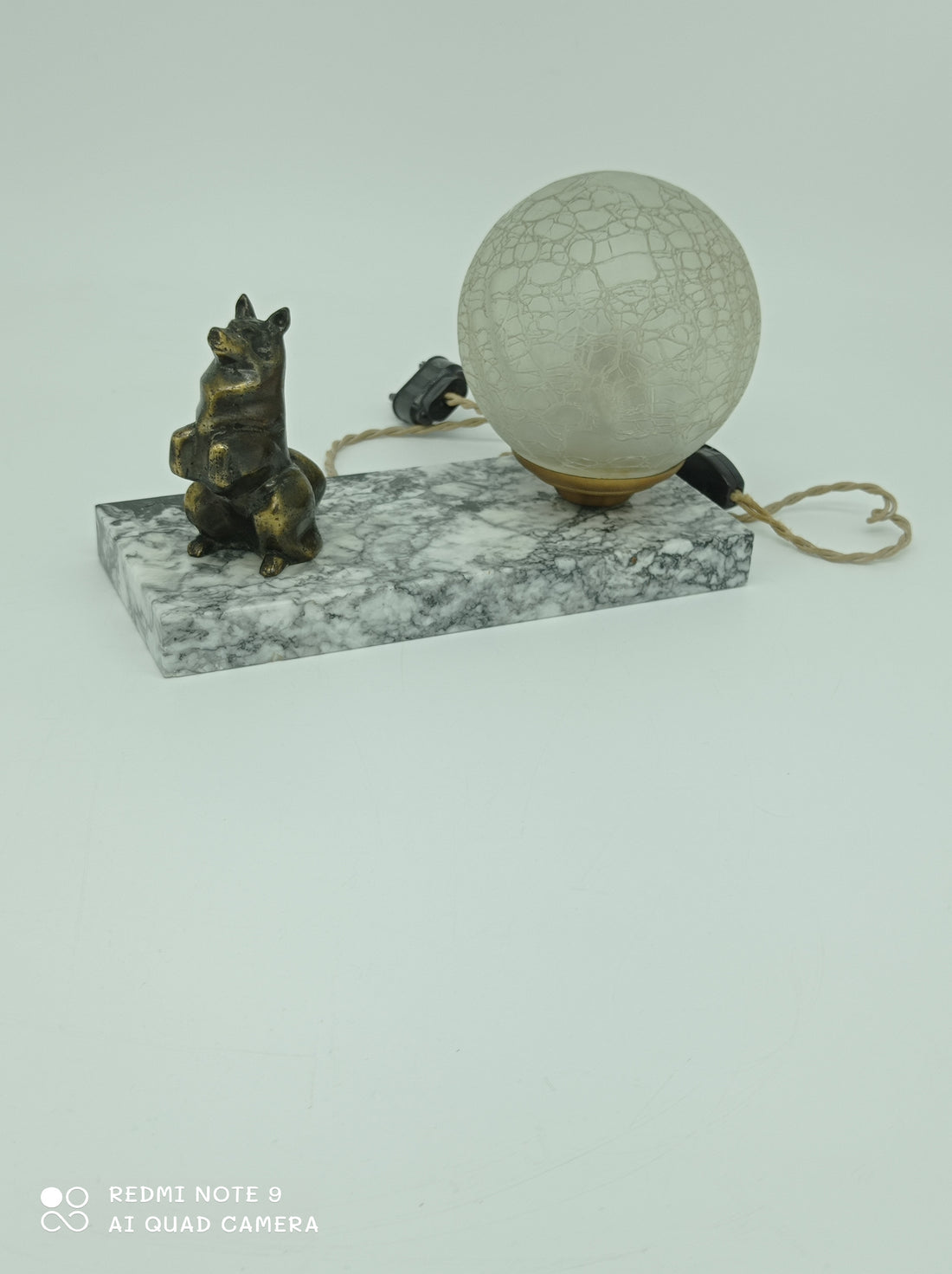 Marble table lamp with a dog sculpture