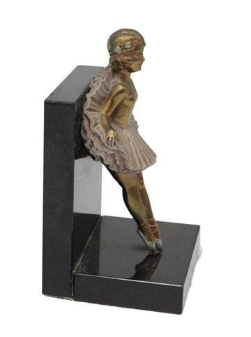 Charming Art Deco Pair of black marble bookends adorned with a young ballerina
