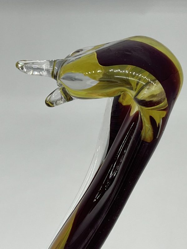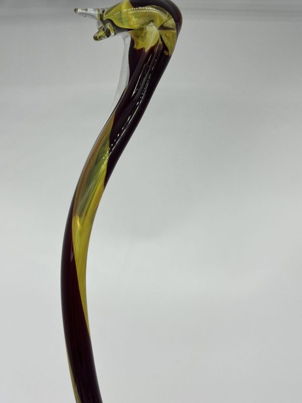 Giorgio remembers entering the glass factory of the famous Domenico Caner. He was still young and impressionable, and he remembers the glowing heat of the fires, the molten glass flowing, but above all, the most impressive thing, this giant blowing, turning, manipulating the glass. And suddenly , astonished, he saw the creation of a magnificent glass horse. Within a few years, the island of Murano near Venice became the most famous glass factory of the Renaissance, chandeliers, statues, etc. Everything was produced for the most beautiful European palaces. This blown glass piton is directly inspired by these traditions and manufacturing.